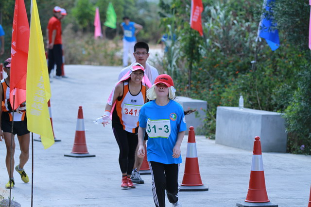 隊長丁奕峰和賀曉娟跑在一處,因為這個項目,女生跑到終點(diǎn)是很重要的條件,所以他不斷在賀曉娟身旁鼓著勁,上坡艱難時,還不時幫著推上一把。在他的支持下,賀曉娟成功地跑完了全程,還是集團(tuán)這些隊伍里,第一個到達(dá)的女生。而丁奕峰,心甘情愿地做她身后的助推器,比她遲了兩秒也依然樂呵呵的。