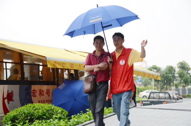 活動(dòng)當(dāng)時(shí)時(shí)有小雨,志愿者熱心打傘護(hù)送獻(xiàn)血的愛心人士回大樓